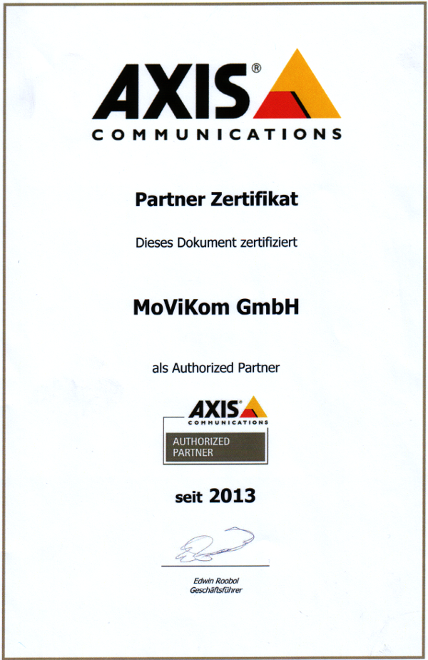 und seit 2013 "Authorized-Partner" der Axis Communications GmbH.